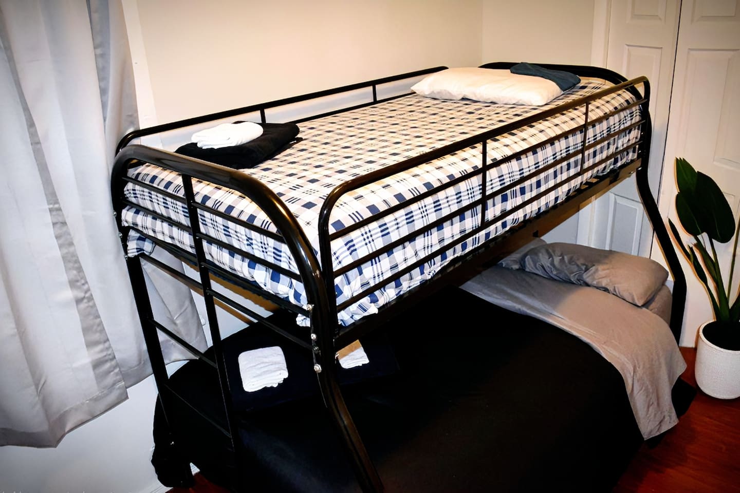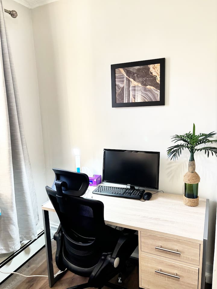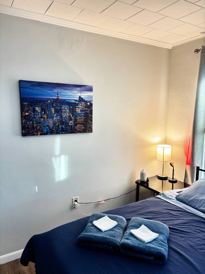 ✨ Highlights: 🛏️ 2 spacious bedrooms with comfy bedding (1 King, 1 Queen, 1 Twin, and 2 Futons and 2 Air Mattresses) 🛁 1 full bathroom with a bidet for added convenience 🍳 Fully equipped kitchen for home-cooked meals 📺 Smart TVs in every room & fast Wi-Fi for streaming or work 🅿️ Free parking available on request 🚗 Close to NYC (30 mins by train or car), EWR (7 mins), and local shops/restaurants Perfect for both short stays and extended visits, our home combines modern amenities with the comfort of a home-away-from-home. Self-check-in ensures a seamless arrival. Discounts available for long-term stays—message us for details! - Neighborhood: ✅ The Mills at Jersey Gardens Mall ✅ Less than 30 minutes to NYC ✅ Few blocks from waterfront ✅ 5 minutes from Newark International Airport - Beds and Sleeping Arrangements ✅ 5 Beds, sleeps 9 total ✅ 1 King bed, 1 Queen bed, 1 Twin bed, 2 futon beds - Amenities ✅ Fast WiFi 300mbps ✅ Tall windows, Hardwood floors ✅ 55 Inch Roku Smart Tv 4K in living room and 55 inch Samsung smart TV 4K in bedroom. ✅ Smart phone wireless charging ✅ King size bed with memory foam mattress ✅ Kitchen Fully Stocked ✅ Linens, Towels, and toiletries provided. ✅ Work desk work remote ✅ Professionally cleaned and sanitized after each stay. - Safety: ✅ Fire extinguishers ✅ Smoke alarms ✅ Carbon Monoxide alarms ✅ First Aid Kit ✅ Detailed 24 hour check in instructions before arrival