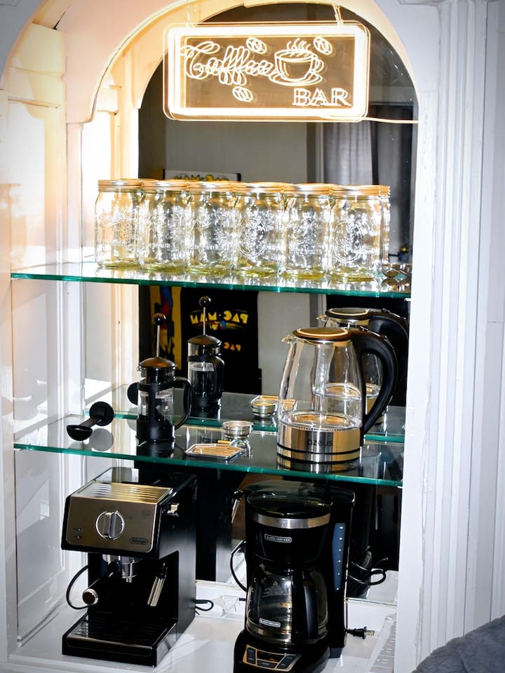 Welcome to New Jersey, a central place to visit NYC, The Statue of Liberty, American Dream Mall, and much more! Because I'm an avid coffee enthusiast, the home is equipped with every way to enjoy an espresso, drip, or French press, with coffee, decaf, tea, sugar, Splenda, and creamer on stock☕ Plus a PacMan gaming station, because why not? 🎮 EWR is 8 mins away, and NYC 35 mins by train or car. Staten Island is across the bridge. Perfect for fun & convenience! Send me a message anytime!